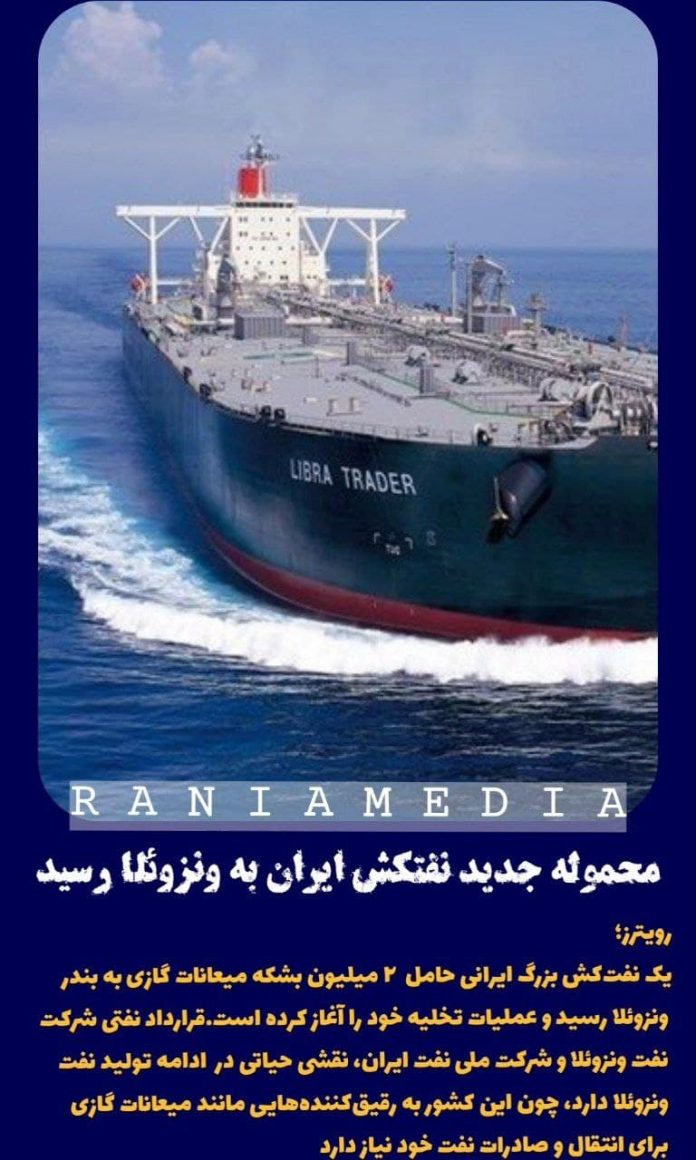 یک نفتکش بزرگ ایرانی حامل ۲ میلیون بشکه میعانات گازی به بندر ونزوئلا رسید و عملیات تخلیه خود را آغاز کرده است.قرارداد نفتی شرکت نفت ونزوئلا و شرکت ملی نفت ایران، نقشی حیاتی در ادامه تولید نفت ونزوئلا دارد، چون این کشور به رقیقکنندههایی مانند میعانات گازی برای انتقال و صادرات نفت خود نیاز دارد.