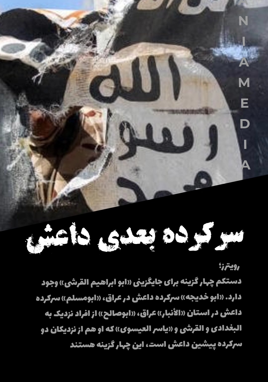 رویترز؛دستکم چهار گزینه برای جایگزینی «ابو ابراهیم القرشی» وجود دارد. «ابو خدیجه» سرکرده داعش در عراق، «ابومسلم» سرکرده داعش در استان «الأنبار» عراق، «ابوصالح» از افراد نزدیک به البغدادی و القرشی و «یاسر العیسوی» که او هم از نزدیکان دو سرکرده پیشین داعش است، این چهار گزینه هستند.